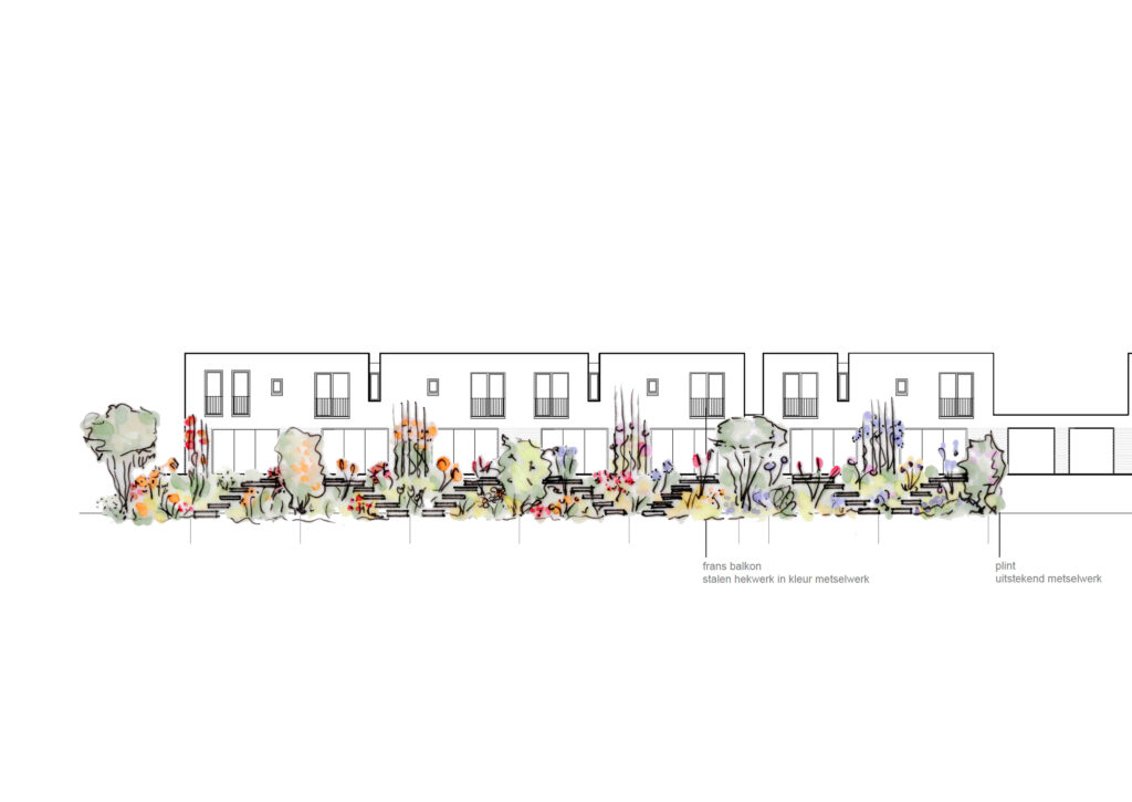 Op verzoek van de Woningcorporatie heb ik een biodiverse, lang bloeiende borders ontworpen die het hele terrein van drie appartementencomplexen optisch met elkaar verbindt. Door de kleuren voor de border aan te laten sluiten op de steenkleur van het complex komen de gebouwen nog mooier uit! Door slim gekozen beplanting is er het hele jaar wel iets in bloei. Goed voor vogels, egels, bijen, vlinders en natuurlijk ook mooi voor de nieuwe huurders!